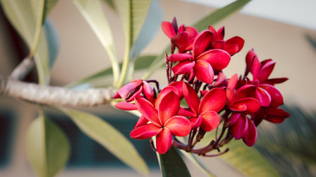 Red Plumeria beautiful tropical ( Frangipani flower )