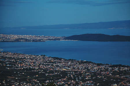 Small city by the sea evening view from top of high hill
