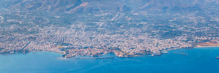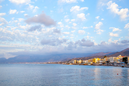 Landscape with small resort town by the sea, Limenas Chersonisou, Crete Island, Greece