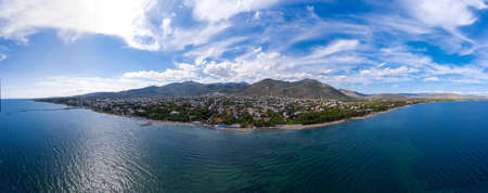 Aerial view of the city near the sea.