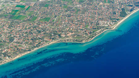 Crete island. Beautiful view of the Crete island Greece from the plane. Holiday, relaxation, sea. Crete view from plane. Greek Island. Seaside of Crete island, aerial view, Greece.
