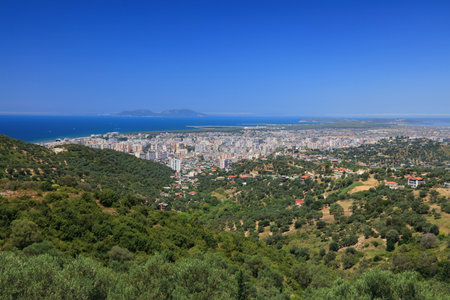 Vlore city view with Adriatic Sea. Summer in Vlore, Albania.