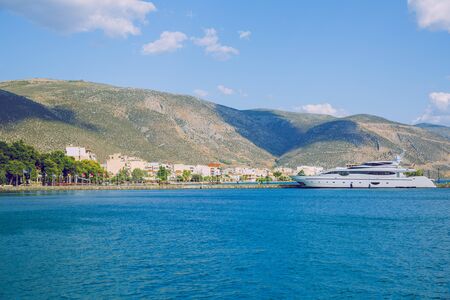 View of the city and the yachts at the Poros island, Greece