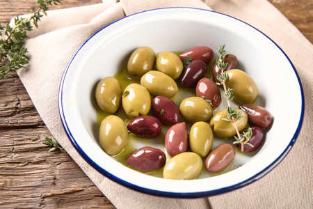 Marinated pitted mixed olives. Traditional Mediterranean relish