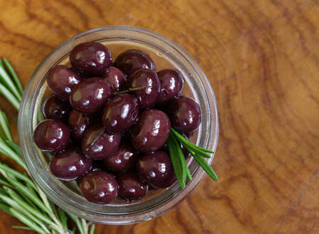 natural black red olives with fresh rosemary twigs