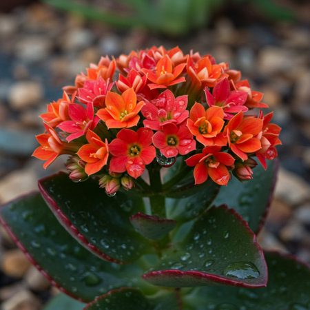 Colorful red Kalanchoe Blossfeldiana flower in garden