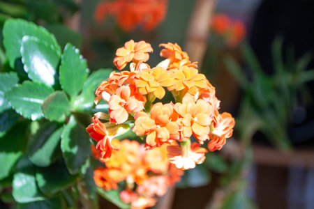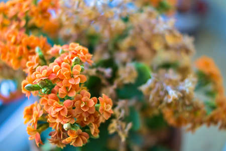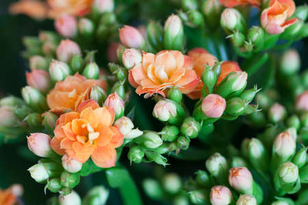 Closeup of a cluster or orange kalanchoe flowers