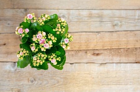 Homemade potted plant kalanchoe with flowers top view