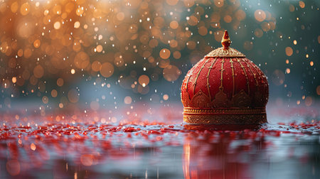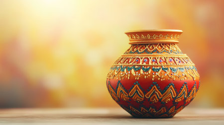 Traditional Hindu Kalash with space for text on a soft background. Symbol of prosperity.