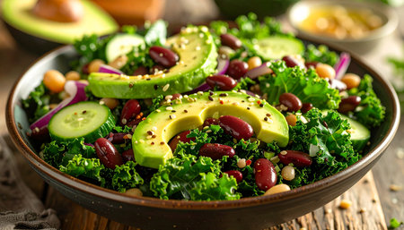 organic chickpea salad featuring avocado and kale, created with generative ai