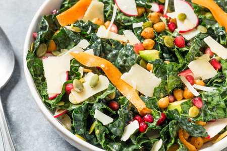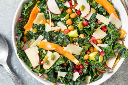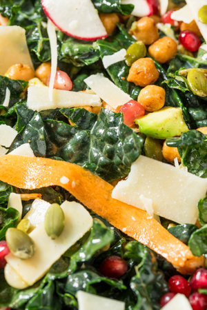 Healthy Homemade Fresh Kale Salad with Carrots Cheese and Avocado