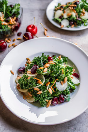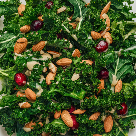 Fresh and healthy salad with kale, almond and cranberry