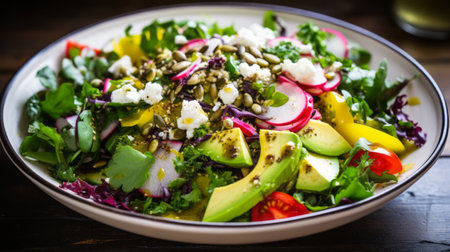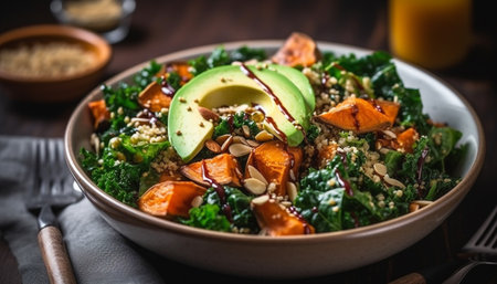 Healthy gourmet salad with avocado and quinoa generated by artificial intelligence
