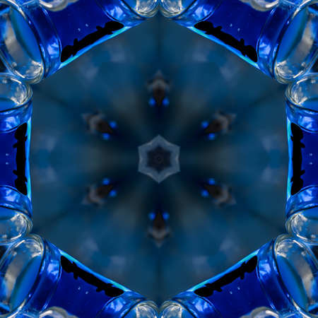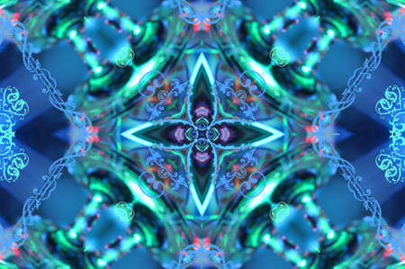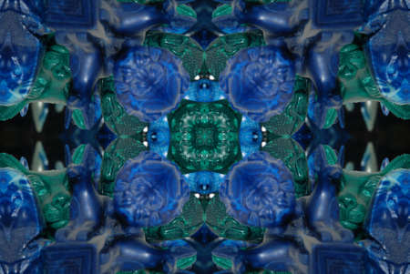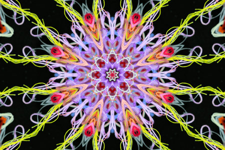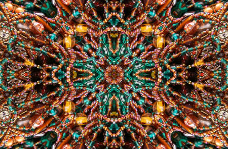 Repetitive pattern by reflections of an image in mirrors. Color kaleidoscopic image. Abstract figure of vibrant tones.