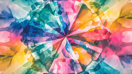 abstract background with colorful geometric kaleidoscope pattern on paper texture