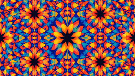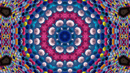 Abstract Colorful Symmetric Pattern Ornamental Decorative Kaleidoscope Movement Geometric Circle and Star Shapes