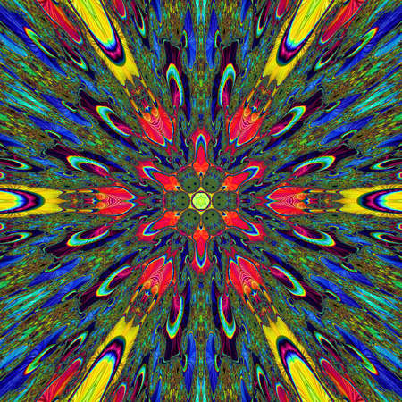 Kaleidoscope wallpaper. Hypnotic abstract image. Mandala surreal ornament. Psychedelic multicolor illustration.
