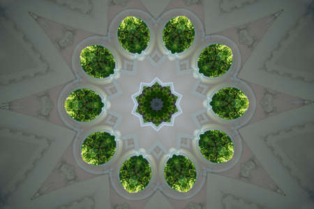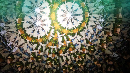 Perspective tile ethnic geometry pattern illustration ornament vintage. HQ rendering. Photographs kaleidoscope mandala.