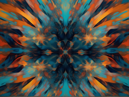 Colorful abstract pattern creating a mesmerizing kaleidoscope effect with bright shapes and vivid colors. Artistic and vibrant design concept for modern decor.