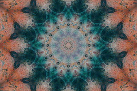 Abstract Colorful Painted Kaleidoscopic Graphic Background. Futuristic Psychedelic Hypnotic Backdrop Pattern With Texture. Folk Ethnic Floral Ornamental Mandala. Vintage Decorative Geometric Mosaic