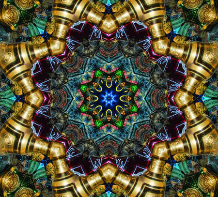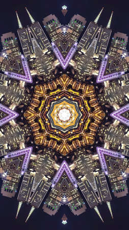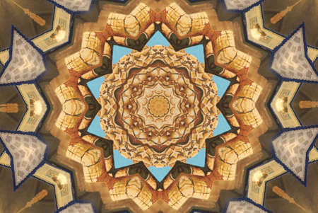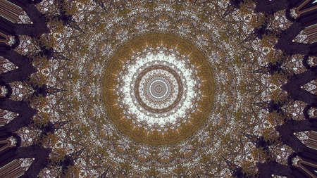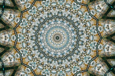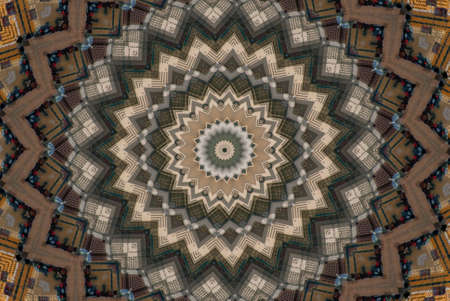 Perspective tile ethnic geometry pattern illustration ornament vintage. HQ rendering. Photographs kaleidoscope mandala.