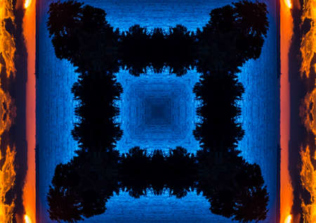 abstract blue and red glow technology future kaleidoscope background, shades of black, square and line