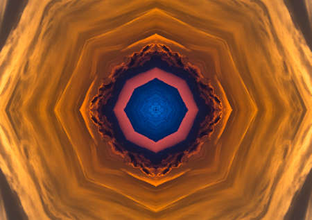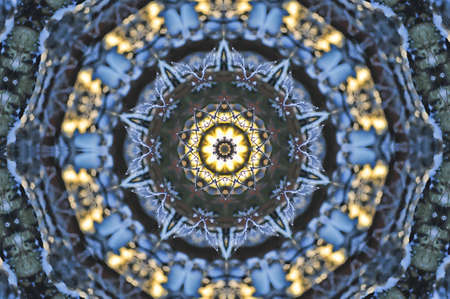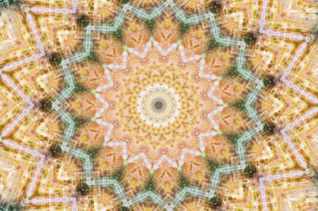 Abstract background. Real shooting done with a kaleidoscope. Main colors: yellow, brown, green, orange, white