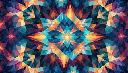 Colorful abstract pattern creating a mesmerizing kaleidoscope effect with bright shapes and vivid colors. Artistic and vibrant design concept for modern decor.