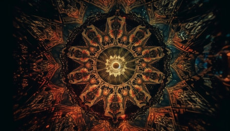 Symmetrical mandala in bright multi colored abstract pattern exudes elegance and creativity generated by artificial intelligence