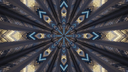 A 3D rendering of futuristic kaleidoscopic patterns background