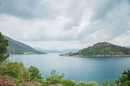 Beautiful view of the Aegean Sea and mountains in Turkey