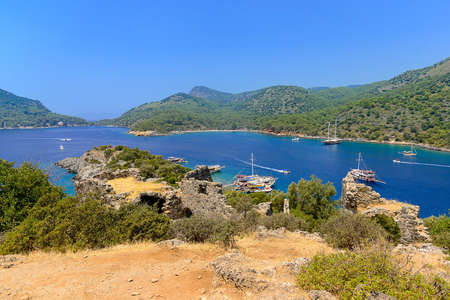 Panorama, pier Lycian city of Simena, travel to Turkey