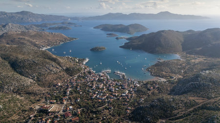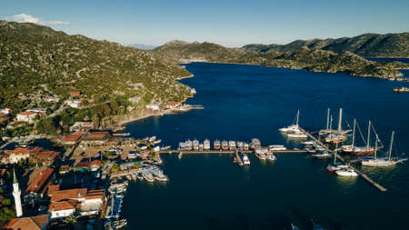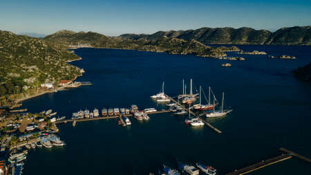 aerial view of the beautiful marina with boats and yachts in Kekova, turkey. high quality photo
