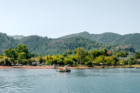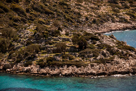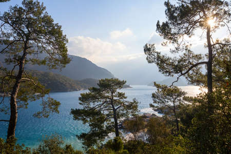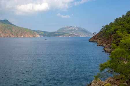 Sea bays of the Lycian Trail. Beaches of the Aegean Sea in Turkey. Blue water of the Mediterranean.