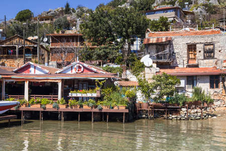 SIMENA, TURKEY - MAY 20 : kalekoy Simena settlement in Uchagiz bay of Turkey near sunken city of Kekova with stonebuilt houses mixed with ancient ruins 2016
