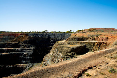 Mining dump with colorful layers of soil excavated from iron ore mining operations