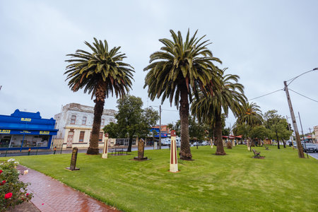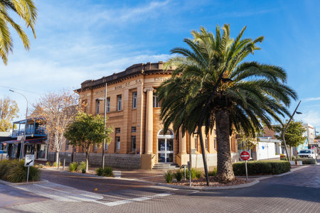 Fremantle, Western Australia - Jan 2, 2018: historical building situated on corner of High and Adelaide Streets and is part of optical illusion artwork in West End Heritage.