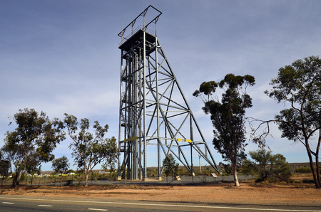 Broken Hill, NSW, Australia - November 11, 2017: Shaft tower in the silver city in New South Wales