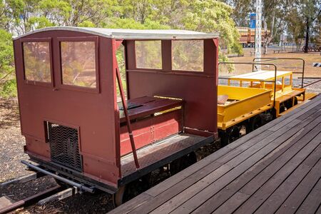 A vintage railway carriage on display at a tourist highway rest stop and small village Australia