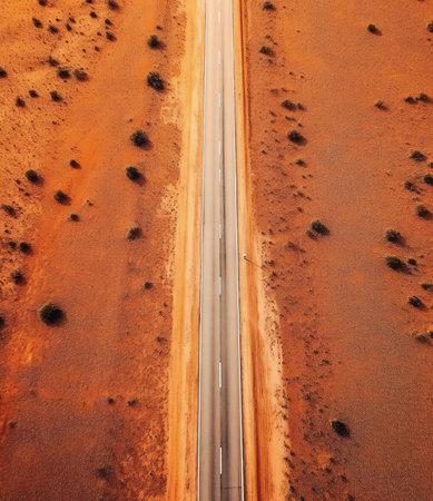 Generative AI : Aerial view of straight road in the desert of Umm Al Quwain United Arab Emirates