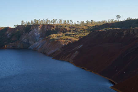 Contaminated pond lake of an old abandoned mine red landscape in Mina de Sao Domingos, Portugal