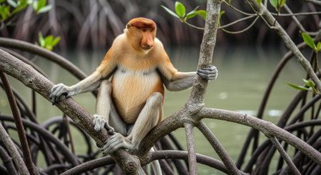 Proboscis monkey of a mangrove tree from the Iceland Borneo, Sarawak, Malaysia