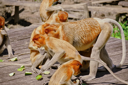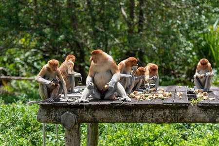 Band of proboscis monkey (Nasalis larvatus) or long-nosed monkey