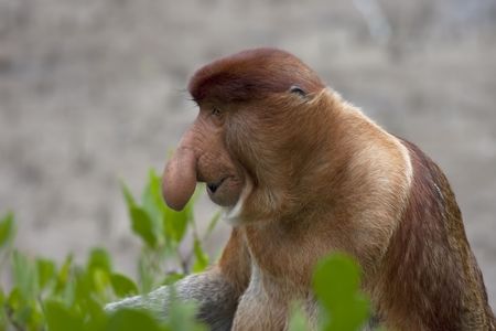 Portrait of long-nosed monkey, Borneo, Malaysia