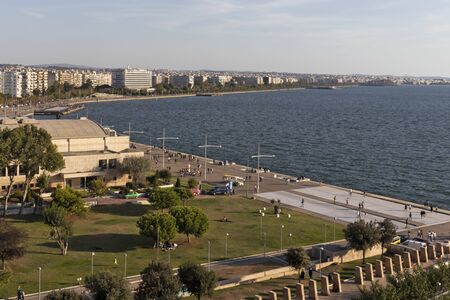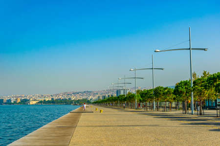 THESSALONIKI, GREECE - SEPTEMBER 22, 2019: Panorama of embankment of city of Thessaloniki, Central Macedonia, Greece