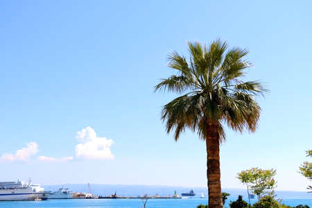 Palm tree in the port of Split, Croatia on a bright sunny day.