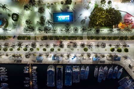 Aerial panorama view over Marina Zeas, Peiraeus city, Greece at sunset