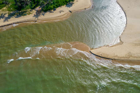 Aerial view of Pak Nam Pranburi Estuary in Prachuap Khiri Khan, Thailand