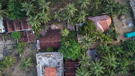 Aerial view of houses on the shoreline in Negombo. Negombo is a city on the west coast of Sri Lanka