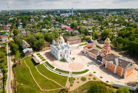 Nikitsky monastery from helicopter. Transfiguration temple. City Kashira